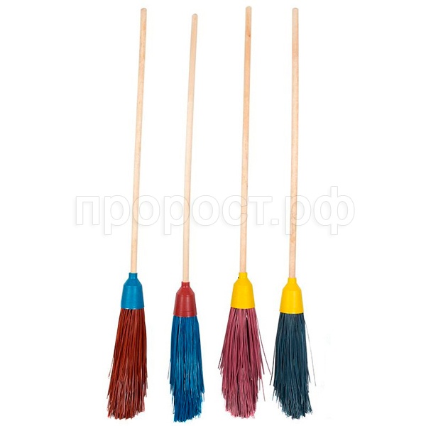 -Каркасом пластиковой метлы является деревянный черенок. Торец черенка скруглен с одной стороны для большего удобства при использовании. К нему прикреплены ТРИ высокопрочных пластиковых кольца, в которые вставлены прутики волокна. С внешней стороны конструкцию закрывает пластиковый декоративный колпак. Такая конструкция придает изделию высокую прочность, которая служит залогом надежности и долговечности изделия.