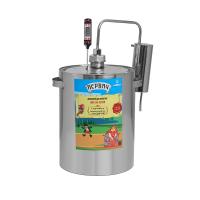 В комплектации товара силиконовые шланги, термометр и спиртомер. Самогонный аппарат изготовлен из пищевой нержавеющей стали. Объем перегонного куба – 12 л