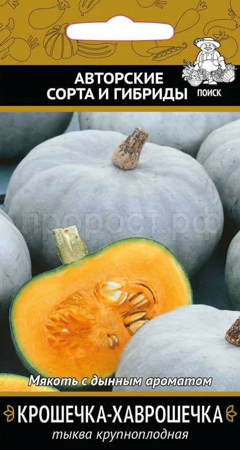 Отличные вкусовые качества. Вид крупноплодная. Среднеспелый сорт. Период от всходов до полного созревания плодов 108-118 дней. Плод округлый, гладкий, серой окраски. Сегменты слабо выражены. Масса 3-4 кг. Мякоть ярко-оранжевая, толстая, плотная, хрустящая, сладкая, с дынным ароматом. Отличается хорошей транспортабельностью, лежкостью (90-100 дней), устойчивостью к мучнистой росе. Столовое назначение.
