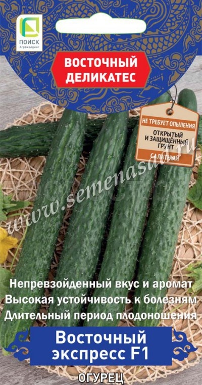 Партенокарпический гибрид для открытого и защищенного грунта. Период от всходов до плодоношения 45-50 дней. Растение мощное, ветвление среднее. Число завязей в узле 1-2. Зеленцы цилиндрической формы, без горечи, длиной 35-40 см, массой до 300 г, темно-зеленой окраски, бугорки крупные, расположены часто, белошипые. Ценится за отличный вкус, хруст и аромат и высокую устойчивость к болезням. Идеален для свежих салатов.
