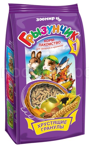Корм "ГРЫЗУНЧИК" по праву называется кормом-лакомством, поскольку он имеет привлекательные для животного вкус и хрустящую структуру, удобные форму и размер гранул, а благодаря применению современных технологий - высокую усвояемость и питательную ценность.